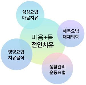 - 풍욕, 냉온욕, 커피관장, 해독쥬스절식, 황토찜질, 통증완화요법